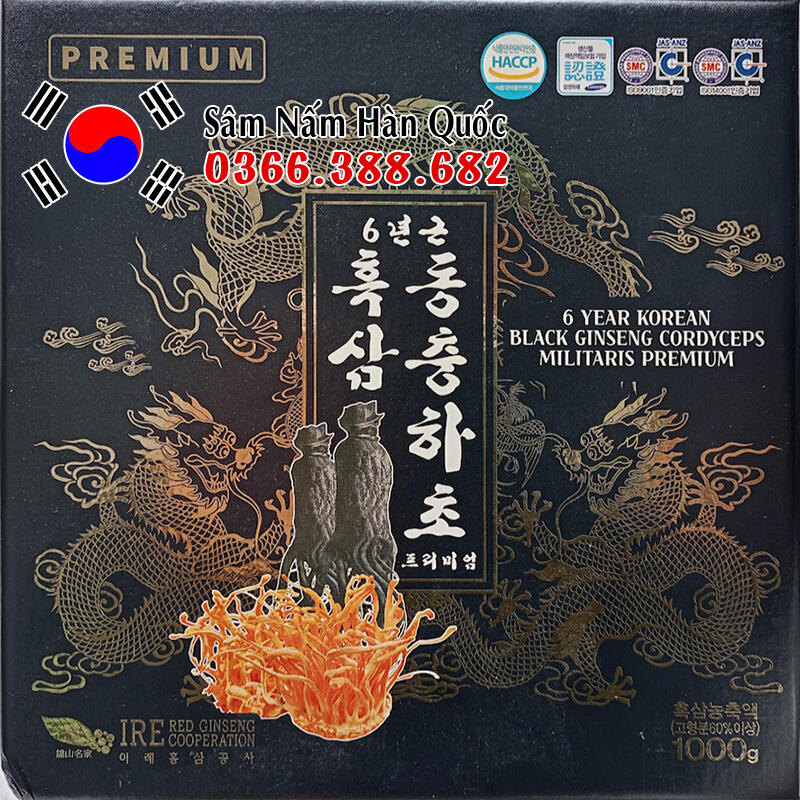 - Tên tiếng Anh: 6 year korean black ginseng cordyceps militaris premium