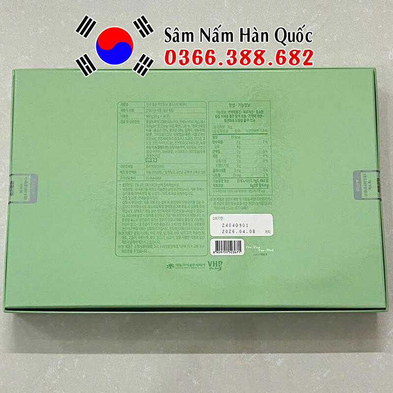 Thành phần: Chiết xuất hồng sâm Hàn Quốc 2,65% (hàm lượng rắn >60%, ginsenoside Rg1, Rb1 và Rg3 >23 mg/g, tỉ lệ 30% thân + 70% rễ), nước tinh khiết, chiết xuất lê (HQ), fructooligosaccharide, sữa ong chúa (HQ), siro cyclodextrin, hỗn hợp chế phẩm [gel thực phẩm (gôm đậu carob, gôm xanthan, glucose, agar, gôm me)], hương liệu tự nhiên (hương vị sữa chua), chiết xuất nhung hươu (New Zealand), chiết xuất đương quy Hàn Quốc, canxi lactat, axit citric (axit citric ngậm nước), bột DHA, sucralose, canxi tảo biển (aquaamine hòa tan trong nước)